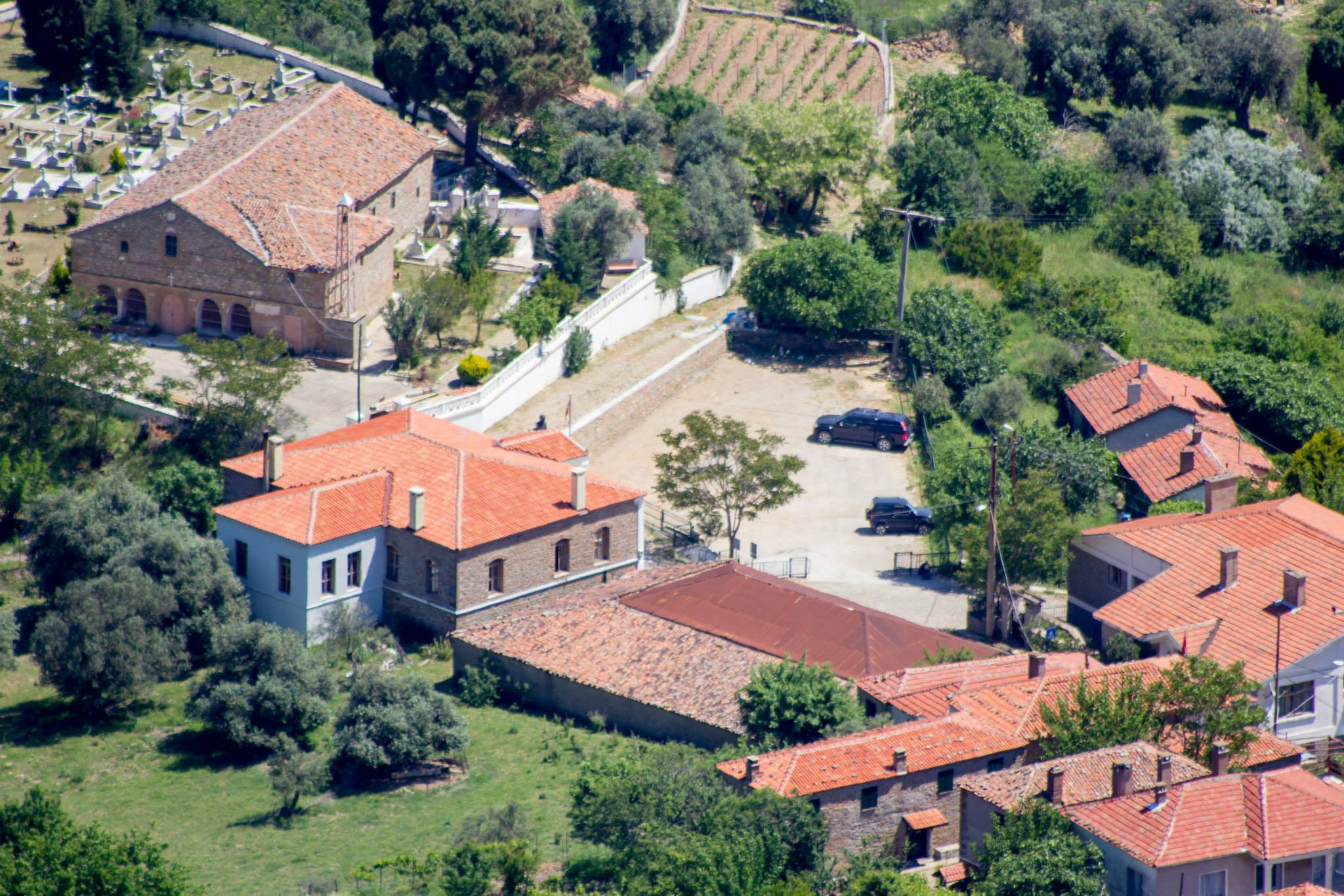 Άγιοι Θεόδωροι - Ναός Αγίου Γεωργίου και δημοτικό σχολείο - αεροφωτογραφία.jpg