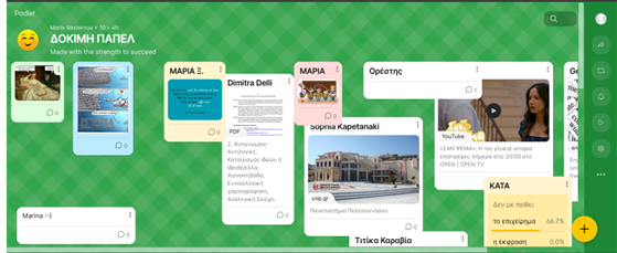 | Eικόνα τοίχου padlet Διάδραση μεταξύ της ομάδας πάνω στον πίνακα της padlet. Δημιουργός: ΜΑΡΙΑ ΞΕΣΤΕΡΝΟΥ |